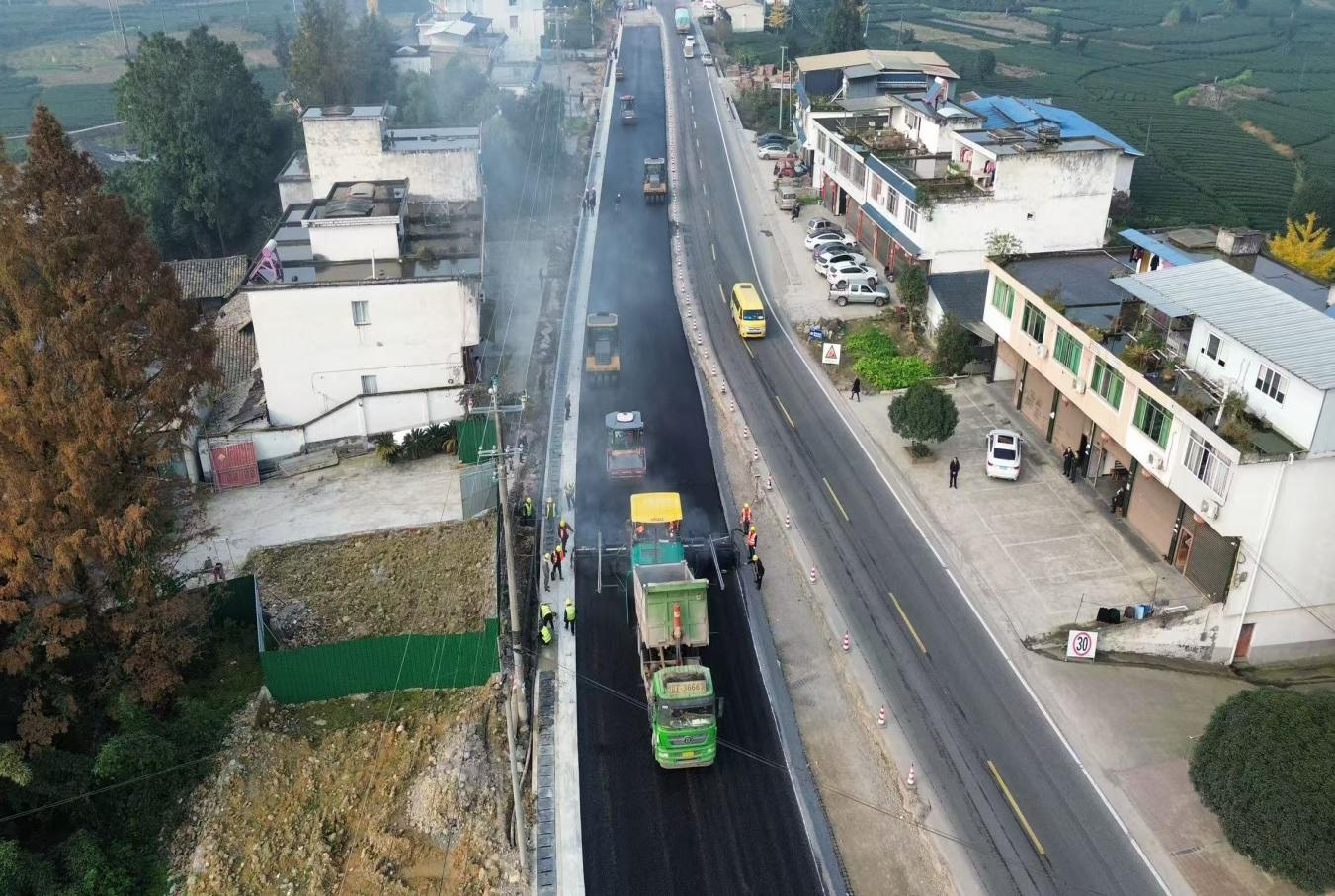 國(guó)道318線名山區(qū)黑竹(成都界)至雨城區(qū)多營(yíng)段改建項(xiàng)目作為四川省重點(diǎn)項(xiàng)目,同時(shí)也是雅安“三區(qū)”同城化經(jīng)濟(jì)環(huán)線中北環(huán)線的重要組成部分,自開(kāi)工以來(lái)始終保持高效推進(jìn)態(tài)勢(shì)。為實(shí)現(xiàn)2026年春節(jié)前主體工程貫通目標(biāo),近期,項(xiàng)目建設(shè)現(xiàn)場(chǎng)掀起“大干快上”熱潮,全體參建單位以“時(shí)不我待”的緊迫感沖刺節(jié)點(diǎn)任務(wù),各項(xiàng)工作取得突破性進(jìn)展。截至目前,項(xiàng)目累計(jì)完成投資24.95億元,完成產(chǎn)值17.6億元;路基、橋涵、隧道工程均完成90%以上,陸續(xù)進(jìn)入路面工程階段,前12公里改建段已建成通車。