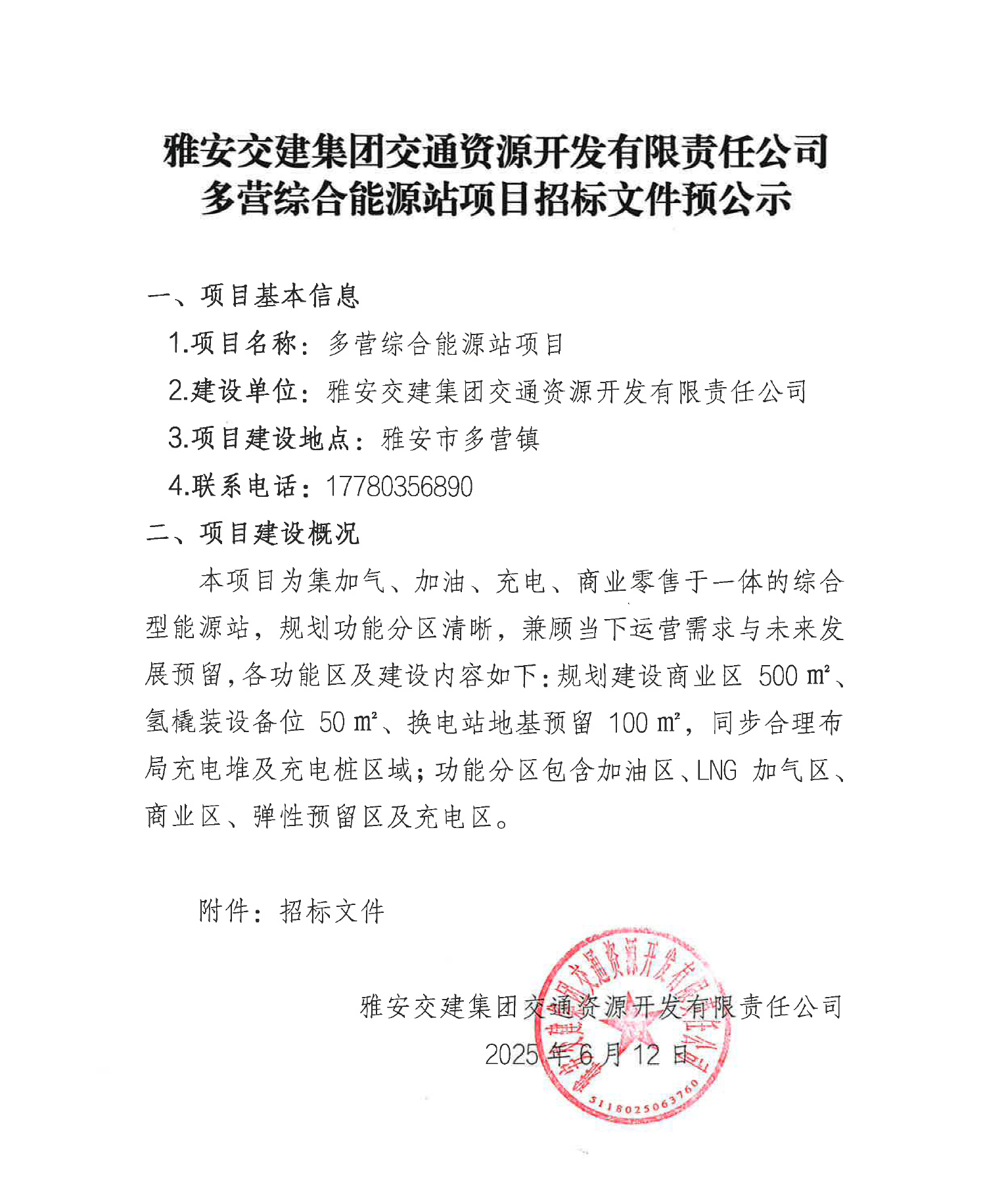 雅安交建集團(tuán)交通資源開發(fā)有限責(zé)任公司多營(yíng)綜合能源站項(xiàng)目招標(biāo)文件預(yù)公示
