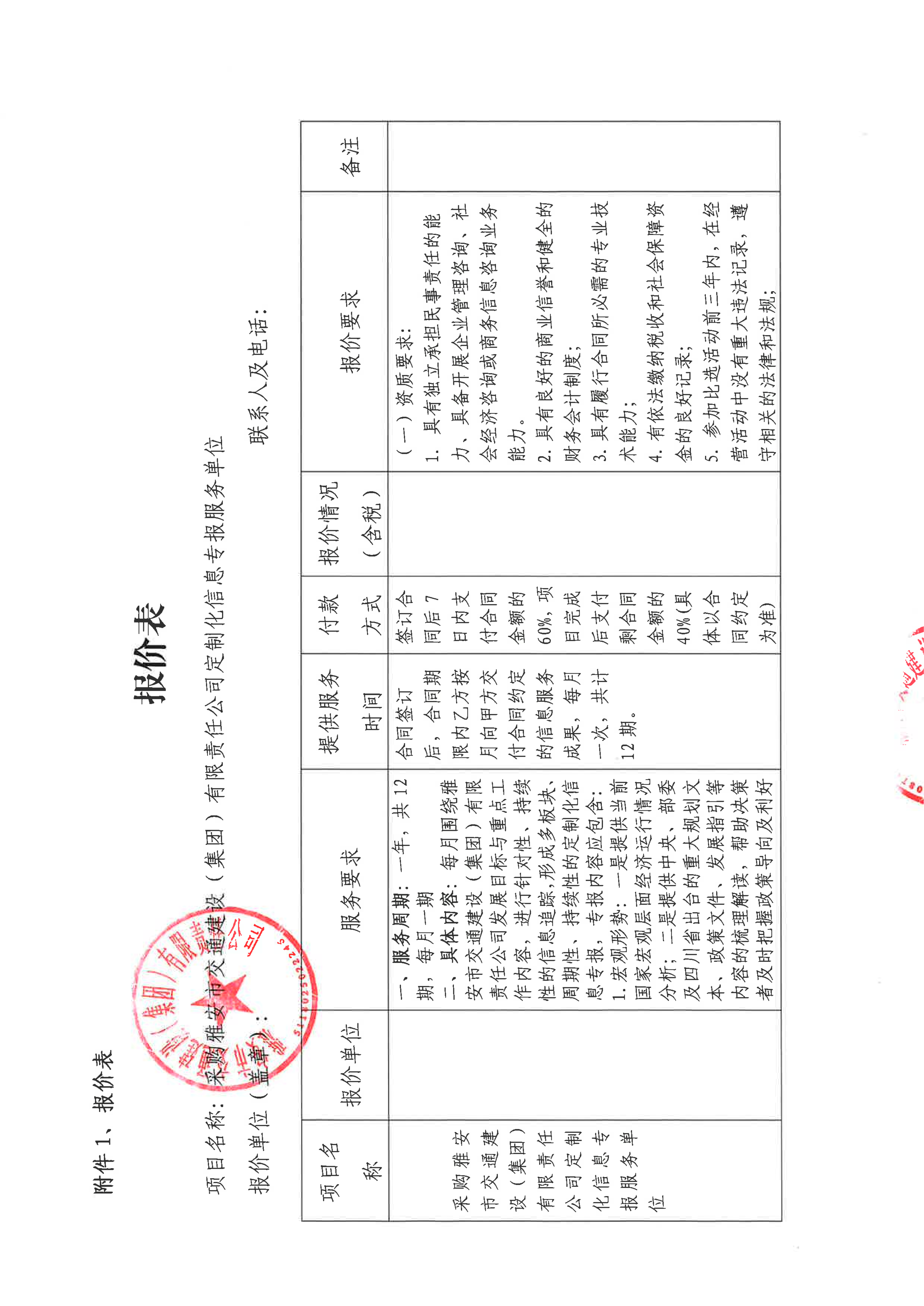 關(guān)于雅安市交通建設(shè)(集團)有限責(zé)任公司定制化信息專報服務(wù)采購限價的詢價函